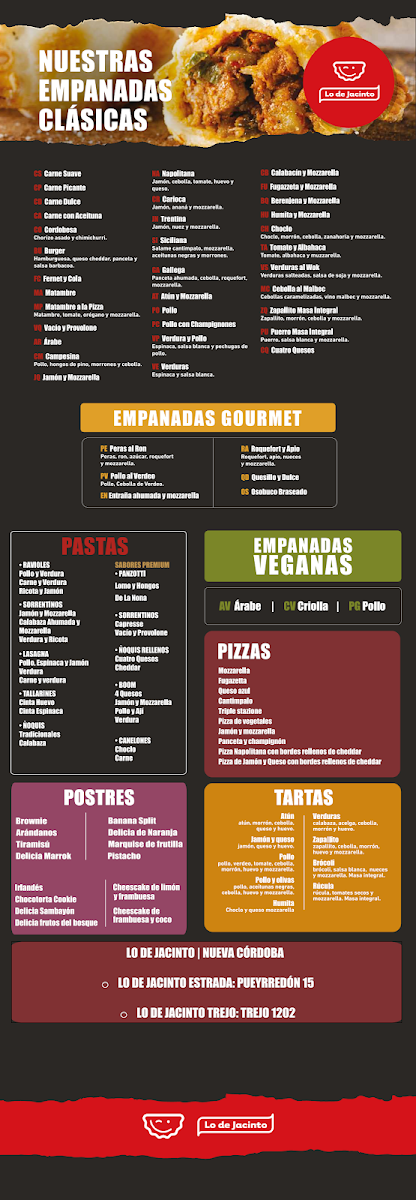 Lo De Jacinto Estrada offers an irresistible menu centered on authentic Argentine empanadas, crafted with tradition and rich flavors. Their lineup features both classic frozen empanadas—vegetable, ham and cheese, chicken, and mild beef—in convenient packs of four, perfect for quick enjoyment at home. For more indulgent appetites, the XXL empanadas stand out, boasting generous 130-gram portions with gourmet fillings like Pollo Champignon, Pollo al Curry, Tucumana matambre, and unique blends like smoked pumpkin with walnuts and mozzarella.